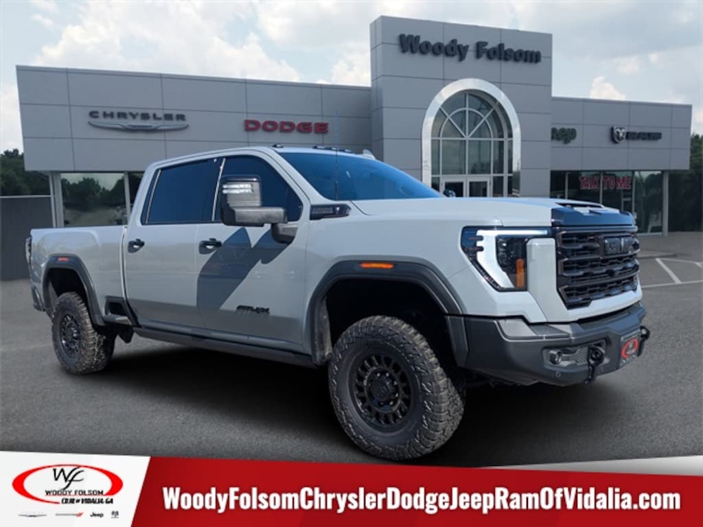 Local Home Delivery: If you buy a vehicle, over the phone, email, text. We will deliver the vehicle to your home or a place of your choosing. Woody Folsom Chrysler Dodge Jeep Ram Vidlia is proud to offer this handsome 2024 GMC Sierra 2500HD in Thunderstorm Gray This vehicle has passed our comprehensive inspection and comes with the following AT4X AEV Edition (AEV Brand Floor Liners (LPO), Gloss Black Door Handles, High Approach Stamped Steel AEV Front Bumper, Stamped Steel AEV Rear Bumper, and Wheels: 18" AEV Salta Black Gloss Aluminum), Gooseneck/5th Wheel Prep Package, Preferred Equipment Group 4SG (120-Volt Bed Mounted Power Outlet, 120-Volt Instrument Panel Power Outlet, 2 Charge-Only Rear USB Ports, 2 Charge/Data USB Ports Inside Center Console, 2 USB Ports, 2-Speed Active Transfer Case, Bed View Camera w/2 Trailer Camera Provisions, Bose Premium Series 12-Speaker System, Deep-Tinted Glass, Electric Rear-Window Defogger, Floor-Mounted Center Console, Front Prem Floor Liners w/Removable Carpet Insert, Front Rain-Sensing Wipers, Gloss Black Header Grille & Grille Insert Bars, GMC Connected Access Capable, HD Surround Vision, Heated 2nd Row Outboard Seats, Heated Driver & Front Outboard Passenger Seats, Hill Descent Control, Inside Rearview Auto-Dimming Rear Camera Mirror, Integrated Trailer Brake Controller, Keyless Open & Start, LED Cargo Area Lighting, LED Smoked Amber Roof Marker Lamps, Manual Tilt-Wheel/Telescoping Steering Column, Multicolor 15" Diagonal Head-Up Display, OnStar & GMC Connected Services Capable, Power Front Passenger Windows w/Express Up/Down, Power Sliding Rear Window w/Defogger, Power Sunroof, Push Button Start, Rear Cross Traffic Alert, Rear Prem Floor Liners w/Removable Carpet Insert, Rear Wheelhouse Liners, Remote Vehicle Starter System, Safety Alert Seat, SiriusXM w/360L, Spray-On Bedliner w/AT4 Logo, Steering Wheel Audio Controls, Trailer Cam Provisions & Trailer Viewing Software, Trailer Side Blind Zone Alert, Trailer Tire Pressure Monitor Sensors, Ultrasonic Front & Rear Park Assist, Unauthorized Entry Theft-Deterrent System, Universal Home Remote, Ventilated Driver & Front Passenger Seats, Wireless Charging, and Wireless Phone Projection), 10-Speed Automatic, 4WD, Obsidian Rush Leather, 12 Speakers, 16-Way Power Driver Seat Adjuster w/Lumbar, 16-Way Power Passenger Seat Adjuster w/Lumbar, 220-Amp Alternator, 4-Wheel Disc Brakes, ABS brakes, Air Conditioning, Alloy wheels, AM/FM radio: SiriusXM with 360L, Apple CarPlay/Android Auto, Auto High-beam Headlights, Auto-dimming door mirrors, Auto-dimming Rear-View mirror, Automatic Emergency Braking, Automatic temperature control, Brake assist, Buckle to Drive, Compass, Delay-off headlights, Driver door bin, Driver Memory, Driver vanity mirror, Dual front impact airbags, Dual front side impact airbags, Electronic Stability Control, Emergency communication system: OnStar and GMC connected services capable, Engine Block Heater, Exhaust Brake, Following Distance Indicator, Forward Collision Alert, Front anti-roll bar, Front Bucket Seats, Front Center Armrest, Front dual zone A/C, Front fog lights, Front Pedestrian Braking, Front reading lights, Front wheel independent suspension, Full Grain Leather Seat Trim, Fully automatic headlights, Garage door transmitter, Heads-Up Display, Heated door mirrors, Heated front seats, Heated rear seats, Heated steering wheel, Heavy-Duty 80 Amp Battery, Hitch Guidance w/Hitch View, Illuminated entry, In-Vehicle Trailering System App, IntelliBeam Automatic High Beam On/Off, Lane Departure Warning System, Leather steering wheel, Low tire pressure warning, Memory seat, Occupant sensing airbag, Off-Road Suspension, Outside temperature display, Overhead airbag, Overhead console, Panic alarm, Passenger door bin, Passenger vanity mirror, Pickup Box, Power door mirrors, Power driver seat, Power moonroof,